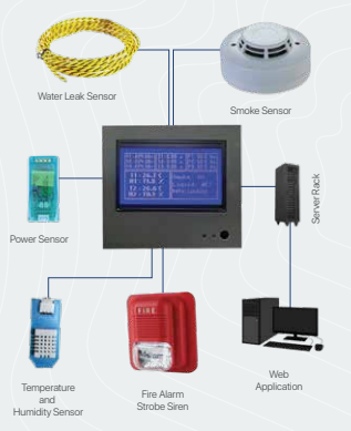 Our state-of-the-art EMS is ideal for industries, commercial buildings, data centers, laboratories, and other infrastructures requiring precise environmental control. The system continuously monitors key parameters such as smoke, temperature, humidity, voltage, amperage, frequency, and fluid presence. Users can access real-time data through an intuitive web application and mobile app, featuring interactive dashboards and comprehensive reports.